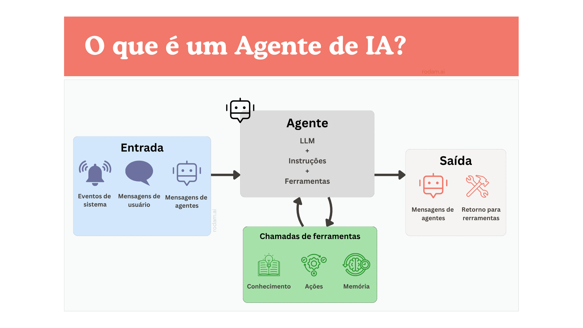 Não era só uma impressão — era literalmente isso. Aqueles “agentes” nada mais eram do que unidades de código com responsabilidade clara, muitas vezes stateless, se comunicando por mensagens, e com lógica de fallback em caso de erro. Você pode ver essa definição e em maiores detalhes aqui.